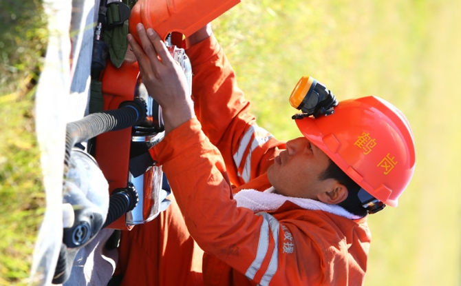 國家礦山應(yīng)急救援鶴崗隊(duì)隊(duì)員正在進(jìn)行實(shí)操比武